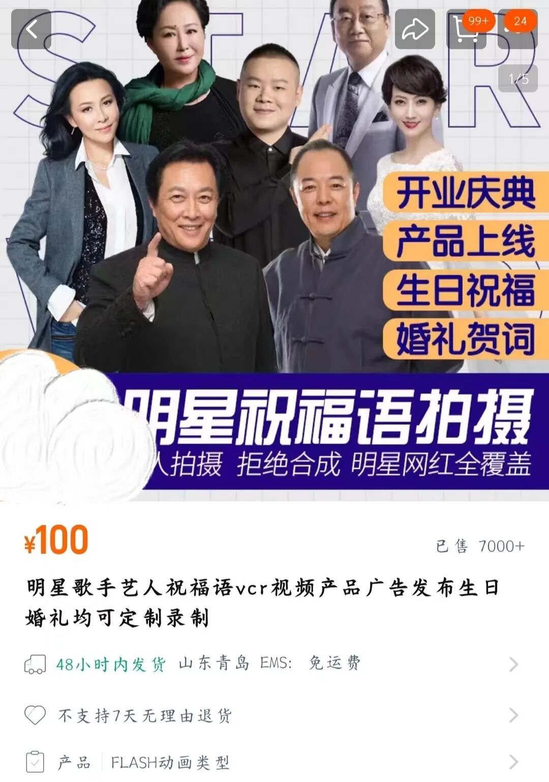 有媒体报道,类似的私人高端定制明星祝福视频早已在网络热销,价格从几十到上万元不等,中新网联系过报价单中的关晓彤、檀健次团队的工作人员,对方都予以否认。