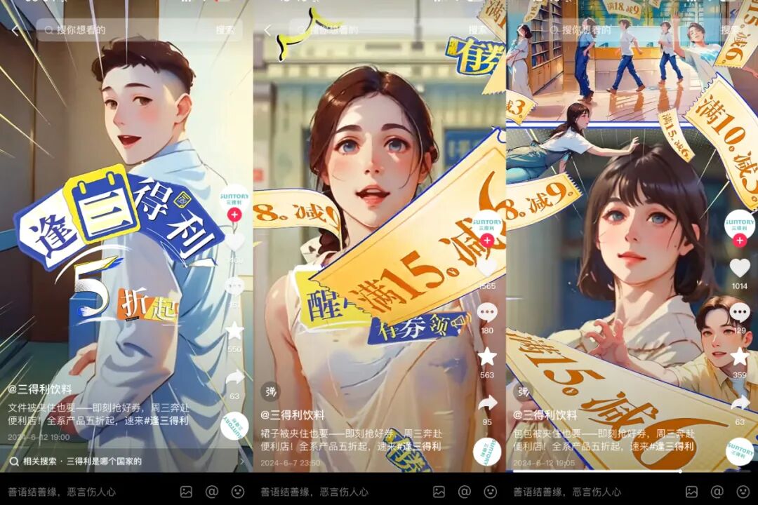 在抖音,「逢三得利」以“迷糊被夹住”和“醒醒有券领”的反差创意为核心,结合AIGC技术转绘出年轻潮流的视觉风格,为用户呈现了一个个既熟悉又新奇的场景。