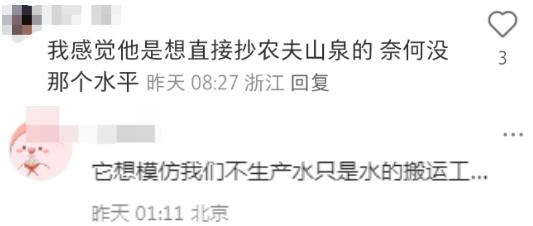 不过农夫山泉已经抢占“搬运工”第一心智,首创火了,后面的模仿都难免陷入“抄袭”“模仿”的争议。