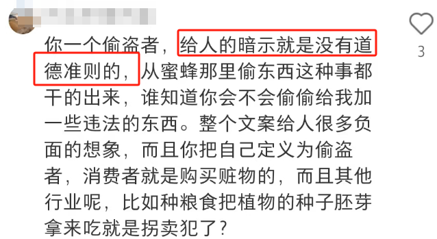 也许汪氏出发点是好的,想借助蜜蜂勤劳,带出产品天然的一面,但落脚点歪了。
