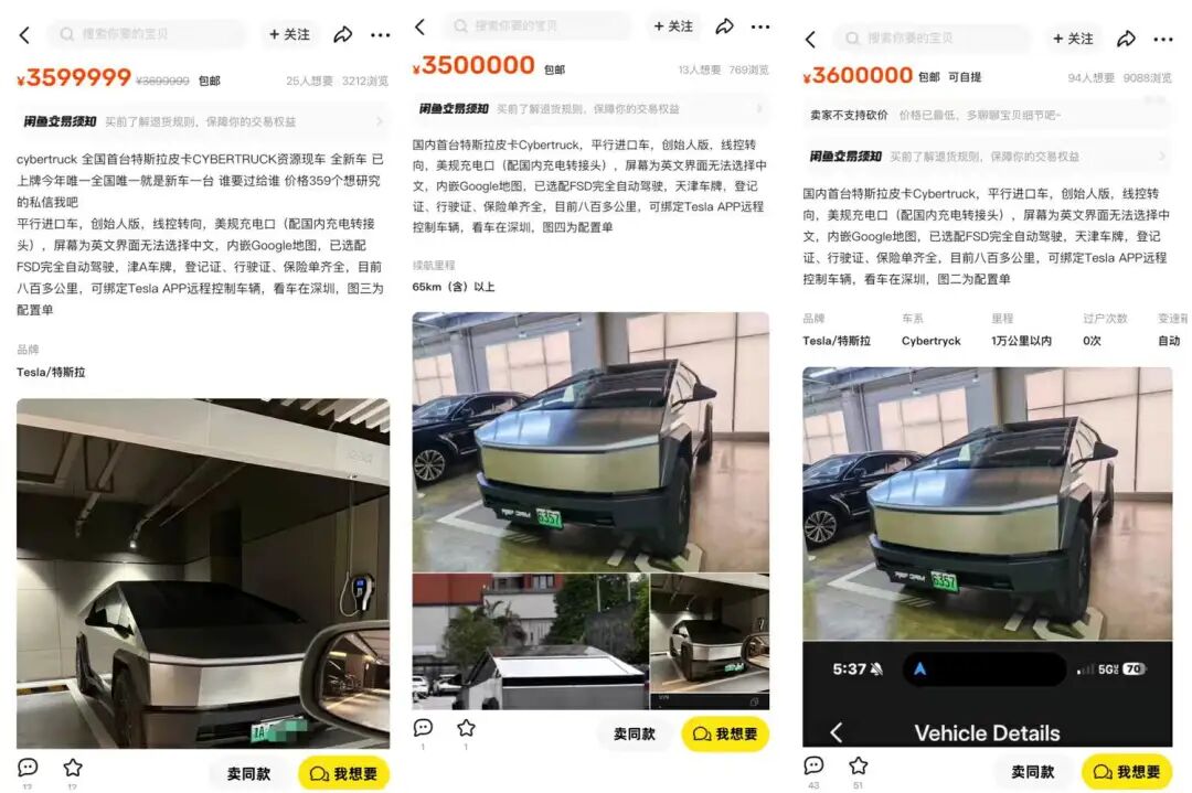 在二手交易平台上,可以搜索到多个转让这辆Cybertruck的帖子,售价基本定在了360万左右。