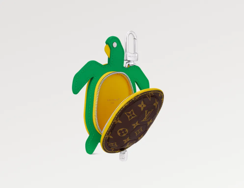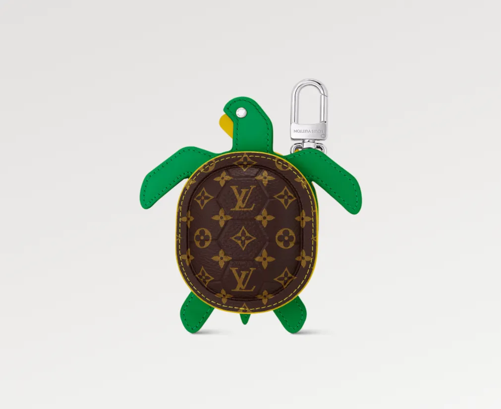 LV也推出“小乌龟”包饰,以皮革裁剪出乌龟的轮廓,龟壳部分则带有LV经典的纹样,看起来可爱又迷你。