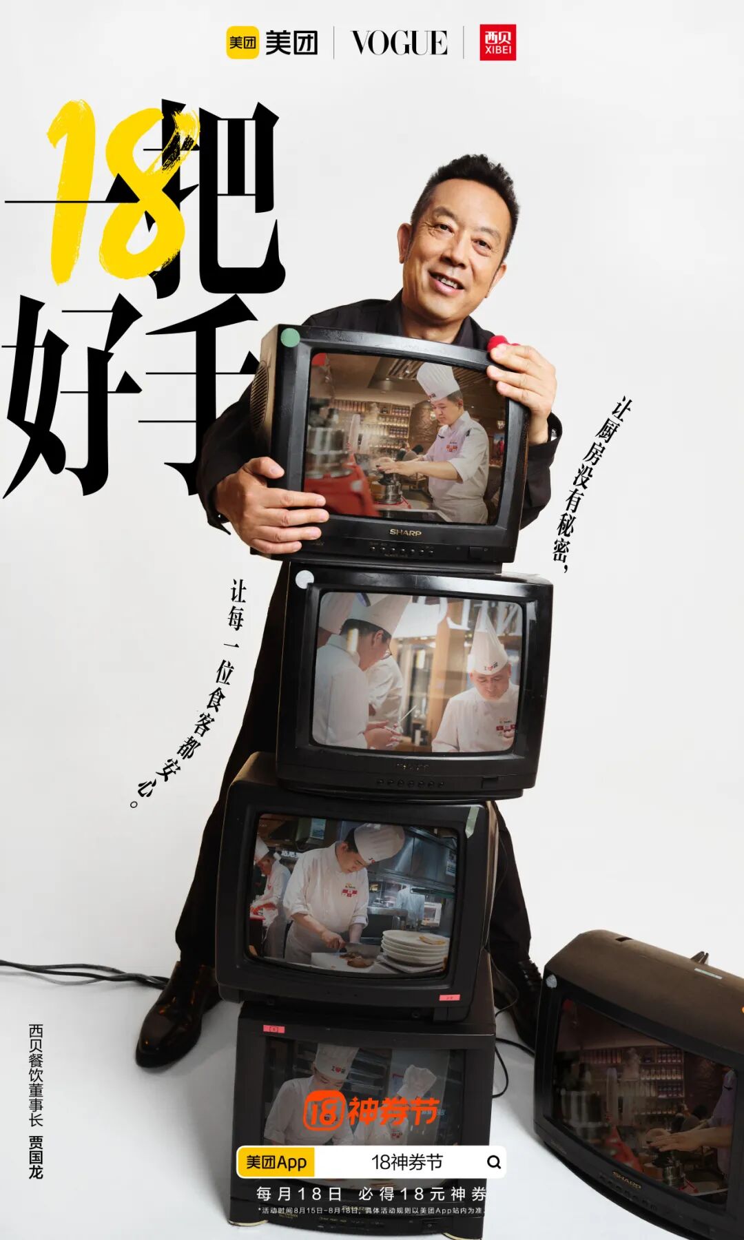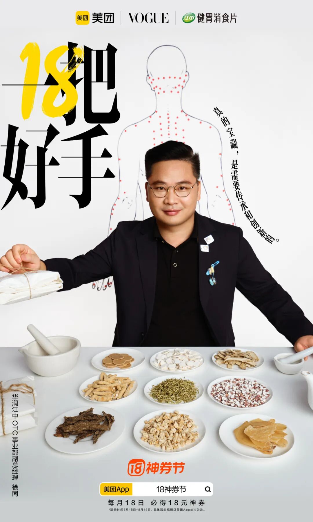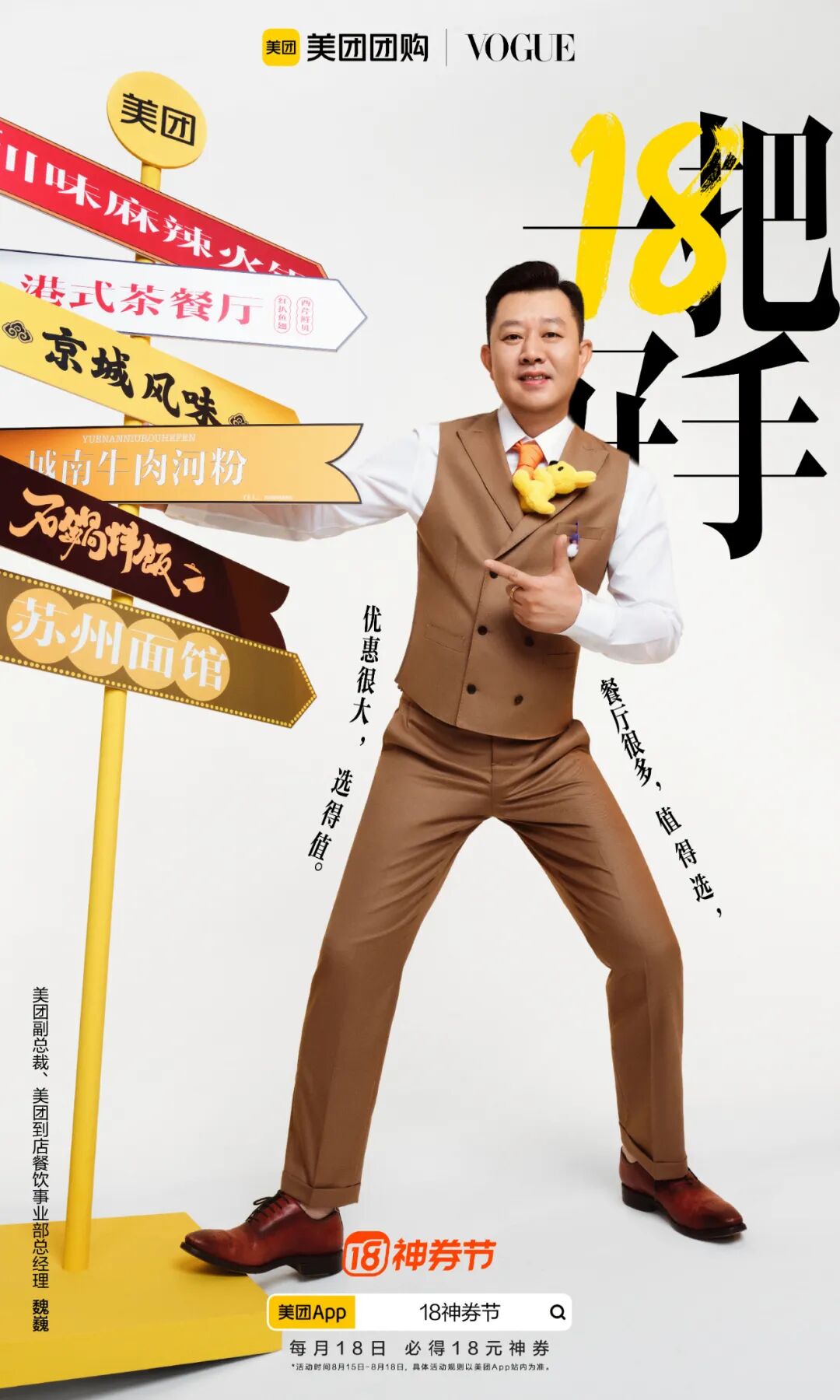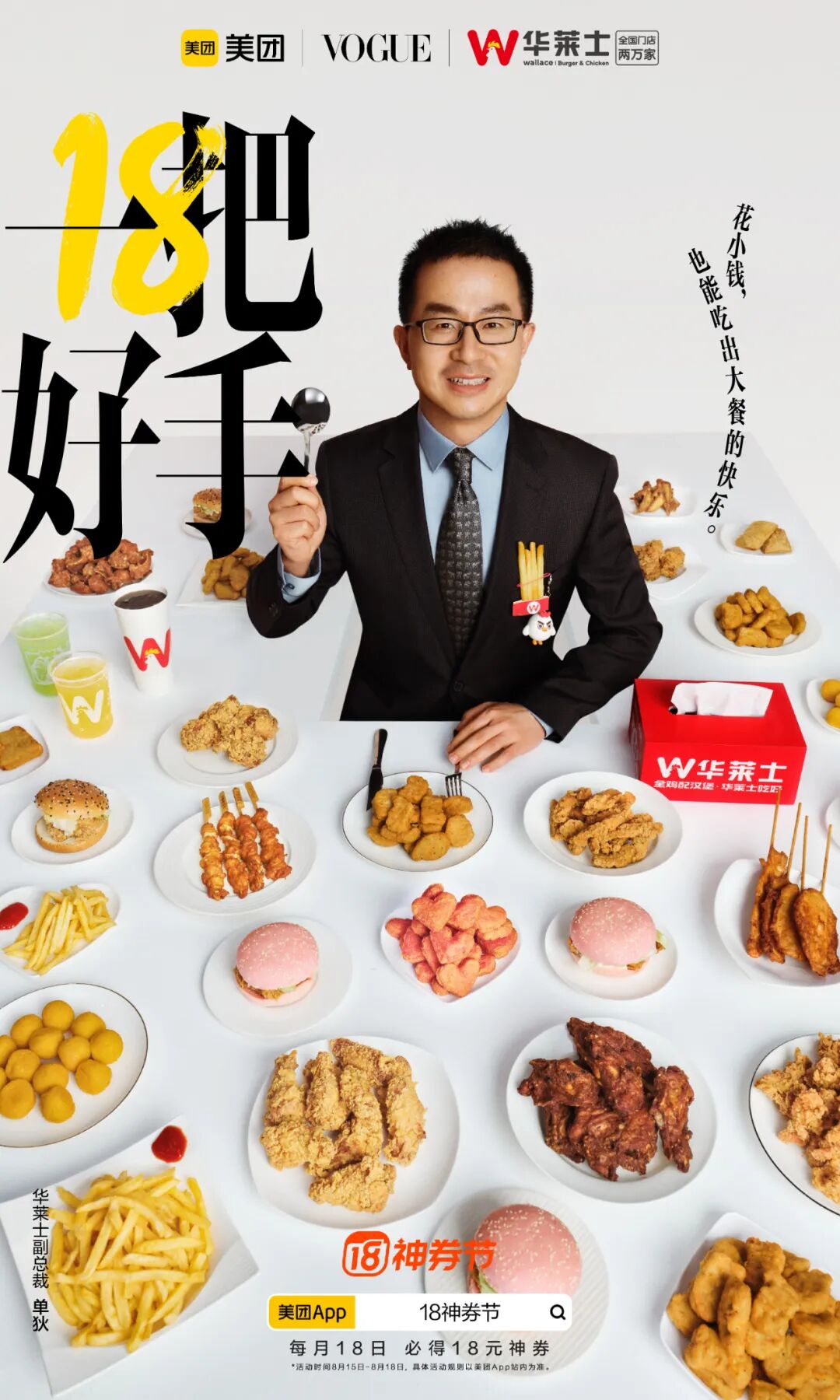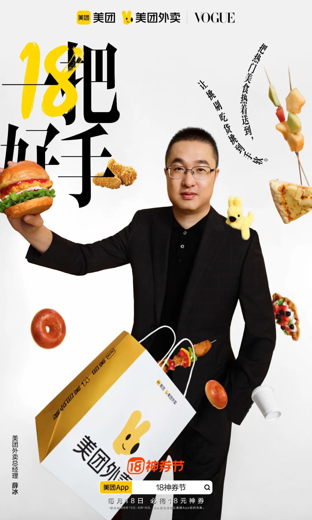 美团还从行业视角出发,通过联合这些合作品牌,以“一把好手”为主题再一次带来这场视觉大赏。促销海报主视觉与视频形成统一,在传播上锁定了消费者的视觉记忆。海报则以大字报形式直接点明“18”、“一把好手”等关键词直击用户敏感点,简单明了的折扣信息,有效增强了信息触达的效率。