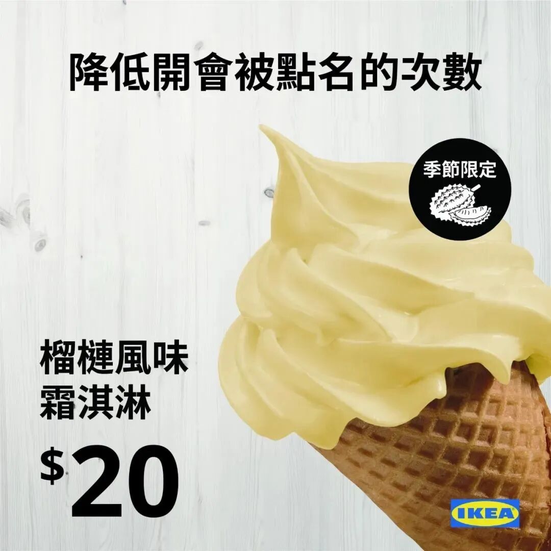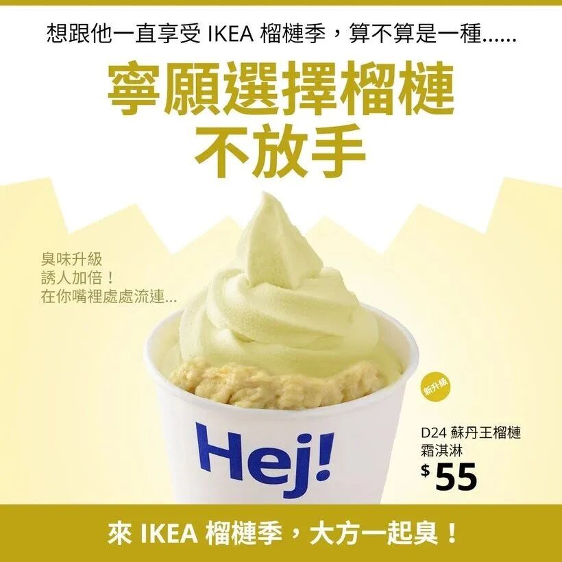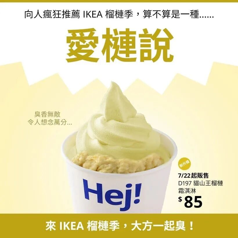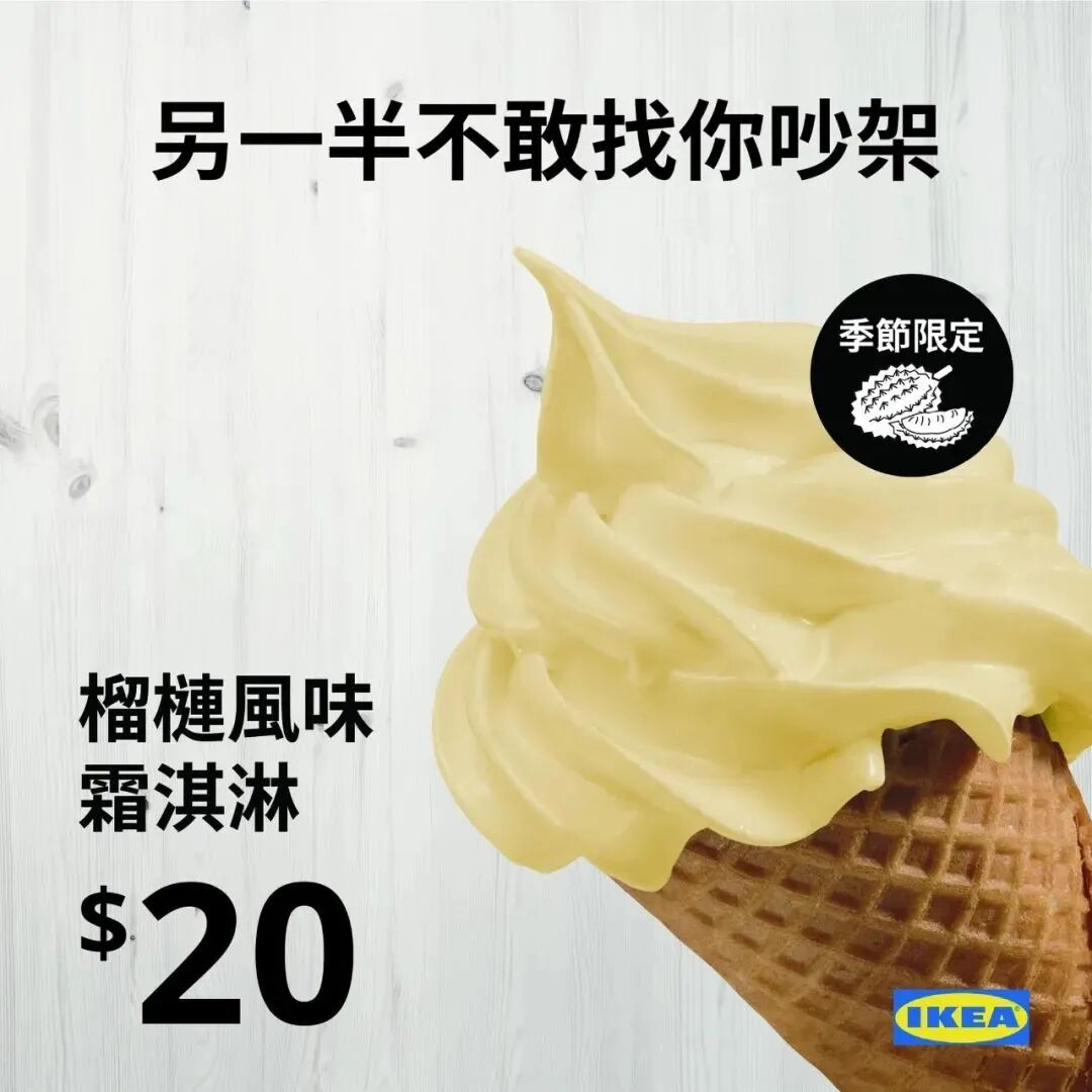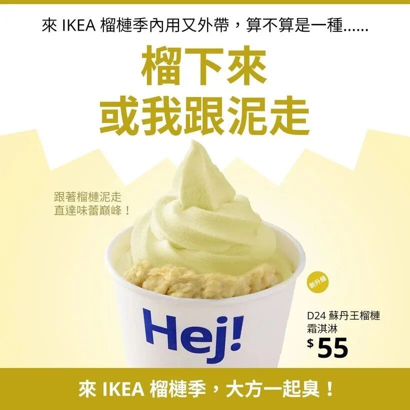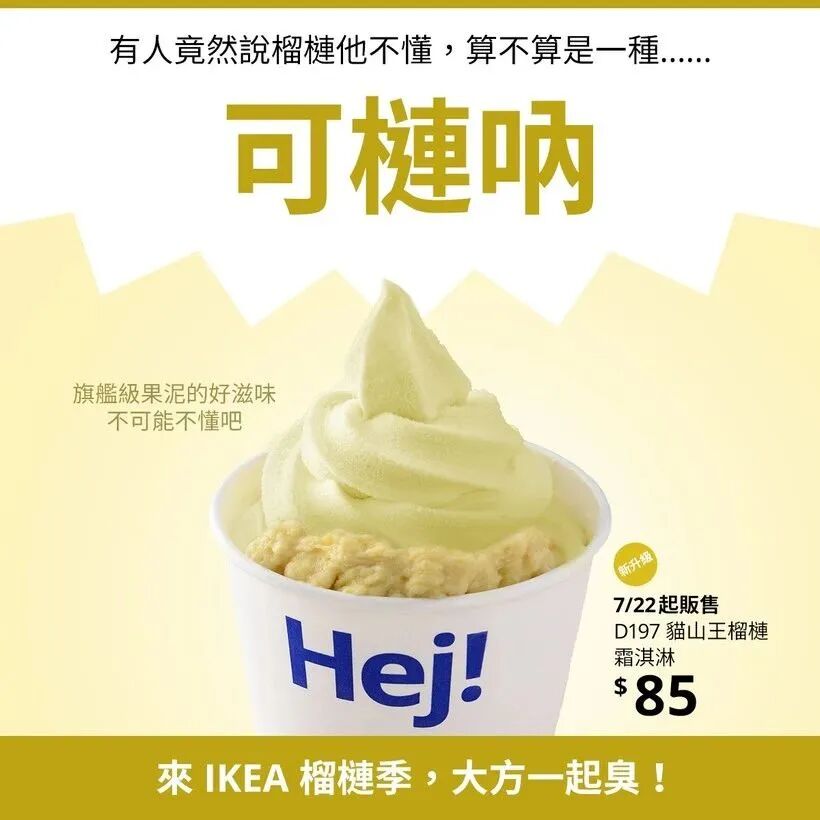 宜家当然也不会放过这个季节,如果说上面的文案都是幽默,那到了榴莲季,则是直接玩上了谐音梗,笑料百出。