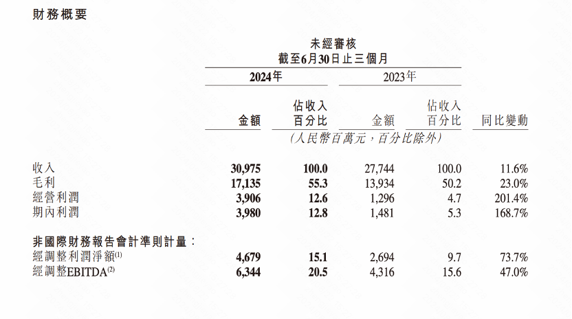 就在《黑神话:悟空》发售同一天,快手公布2024年第二季度业绩。与去年同期相比,上季度快手营收和利润均实现两位数百分比的增长:营收同比增长11.6%至310亿元;毛利润同比增长23%至171亿元;经调整净利润同比增长74%至47亿元。