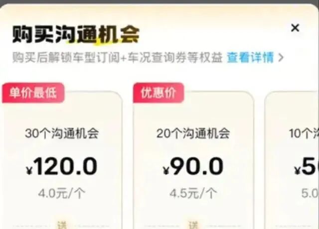 针对这一制度,网上出现了部分用户晒出的截图,显示额外沟通机会的售价为:10次沟通机会50元,20次沟通机会90元,30次沟通机会120元。