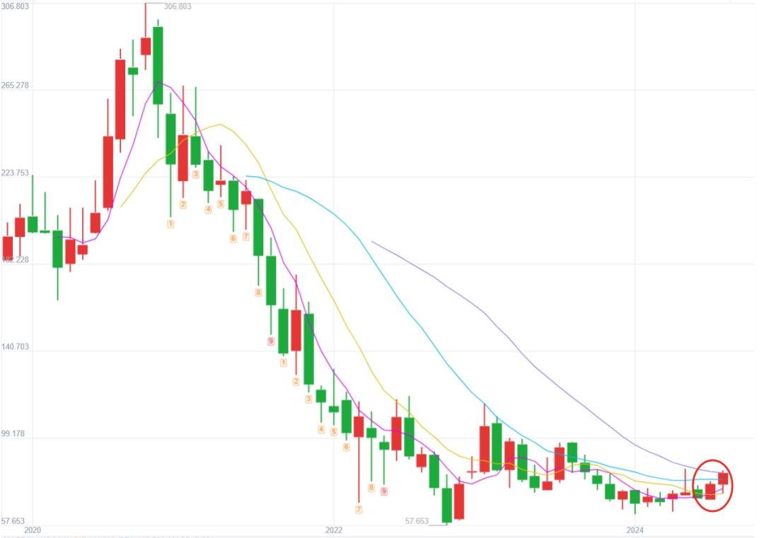 而阿里目前港股股价表现低迷,正处于2019年上市以来的低位区间。好消息是,7月、8月阿里港股股价稳定上升,有触底反弹的信号。若9月初,阿里能成功纳入港股通,或将为其股价提升提供更充足的动力支撑。