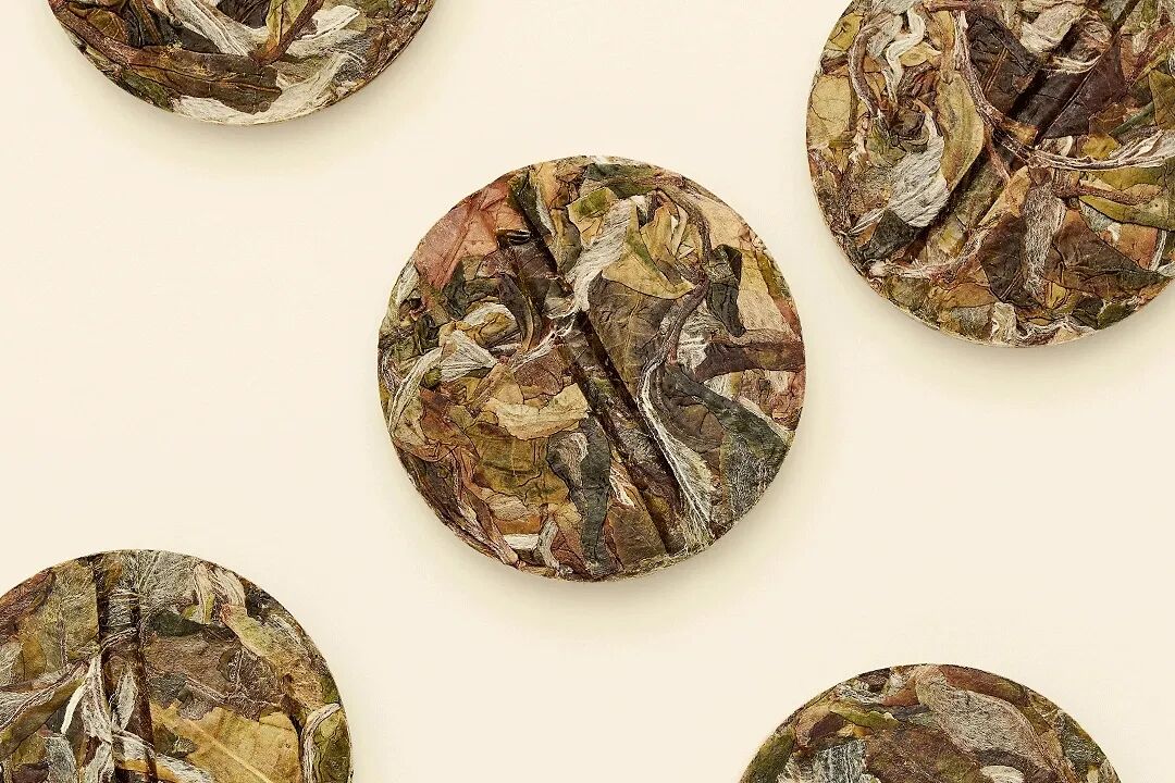景谷白茶来自云南普洱景谷县,挑选肥壮厚实的一芽一叶、二叶,压成8g小圆饼,2泡的茶量,中间压凹,轻松掰开。入口是鲜甜的花蜜,嘴里充盈着黄杏、鲜枣的自然甜味,鲜爽无比,很好地镇压油腻。
