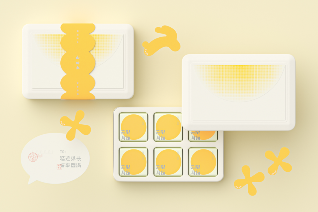 山田土「月来月好」中秋礼盒,腰封是月圆的意象,祝愿你,祝愿你在意的人:月来月好。月上桂花寓意“蟾宫折桂”,玉兔自古便是祥瑞,健康吉祥,许多美好的小彩头,都送给你。