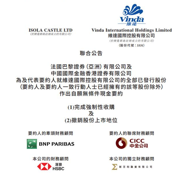 又是十七年后,也就是今年的8月24日,维达国际结束了在香港的上市历程,最终以每股23.50港元的价格购入11.107亿股,总价高达261亿港元的价格被华侨富商陈江和收购。