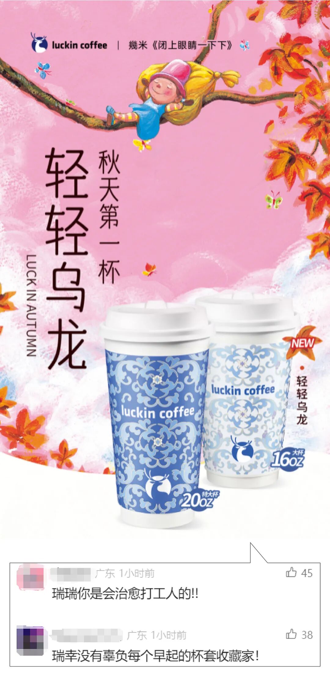 配上这次出自艺术家几米之手的绘本纸袋和杯套,和“再送1亿杯”的天天9.9活动,打工人秋天的第一份治愈,又是通勤搭子瑞幸给的。