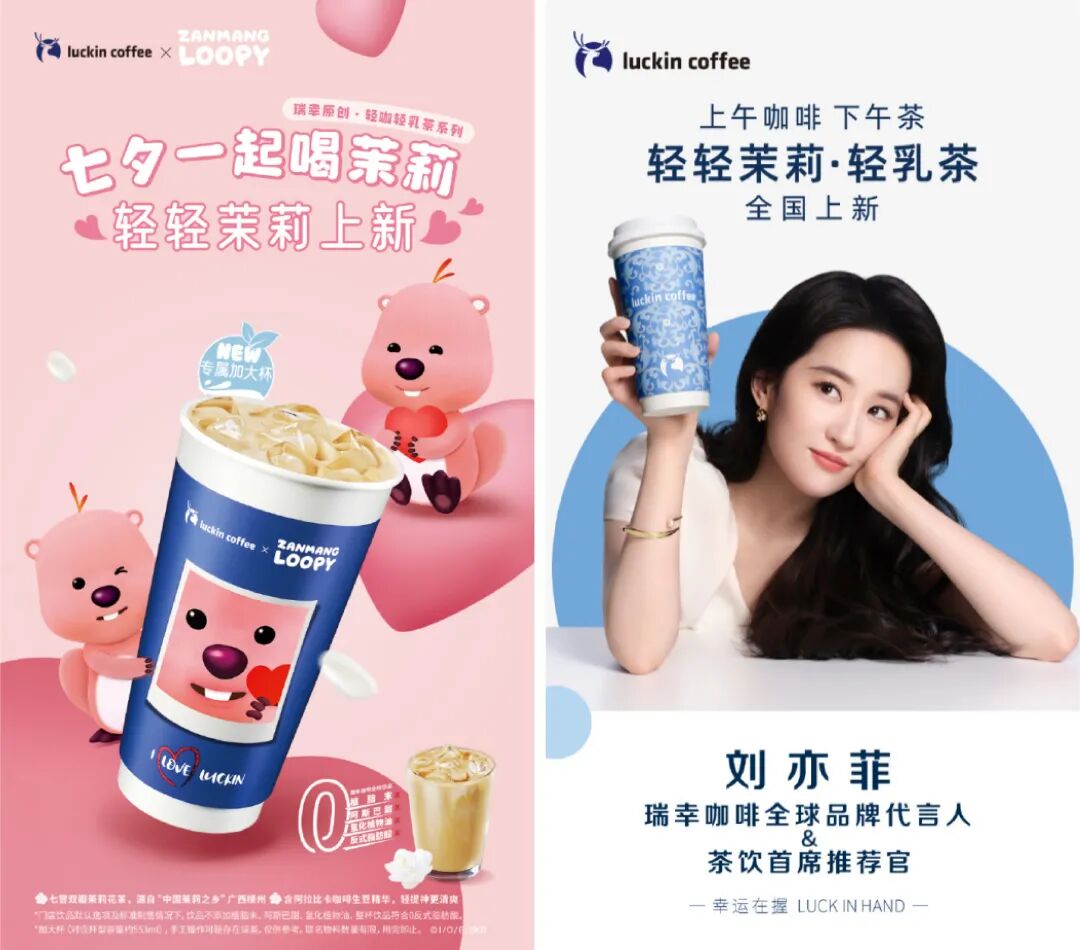 “轻轻乌龙”一上线就火爆,一定程度上是承接了消费者喝过“轻轻茉莉”之后,对轻乳茶系列产生的更高期待。后者作为轻乳茶系列的排头兵,先是联名超高人气IP“顶流女明星”Loopy,后又被新晋代言人刘亦菲端在手里拍海报,实打实卖出了4400万杯+。