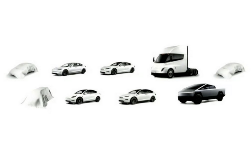 当时放出的预告图中,除了现有的Model S、Model X、Model 3、Model Y、Cybertruck、Semi(电动半挂卡车)外,还有三款被盖住的神秘新车。