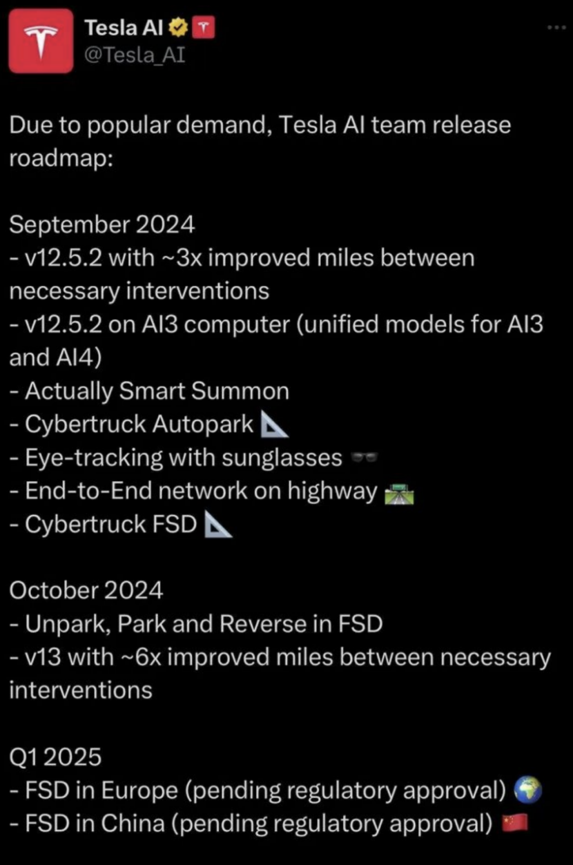 终于按捺不住的特斯拉,在近期通过社交媒体官宣进展,预告2025年第一季度在中国和欧洲推出FSD,但仍有待监管批准。