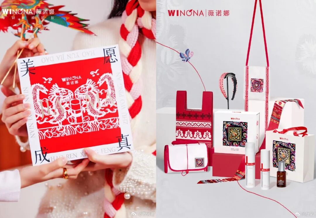年初薇诺娜以云南甲马为灵感,定制极具文化底蕴的新年礼盒;在2024天猫金妆奖峰会现场,薇诺娜上演“愈见非遗,生生不息”为主题的云南非遗民族大秀;5月薇诺娜推出“愈见非遗,遇见多一种美”的非遗礼盒,为彝族绣娘们拍摄大片......