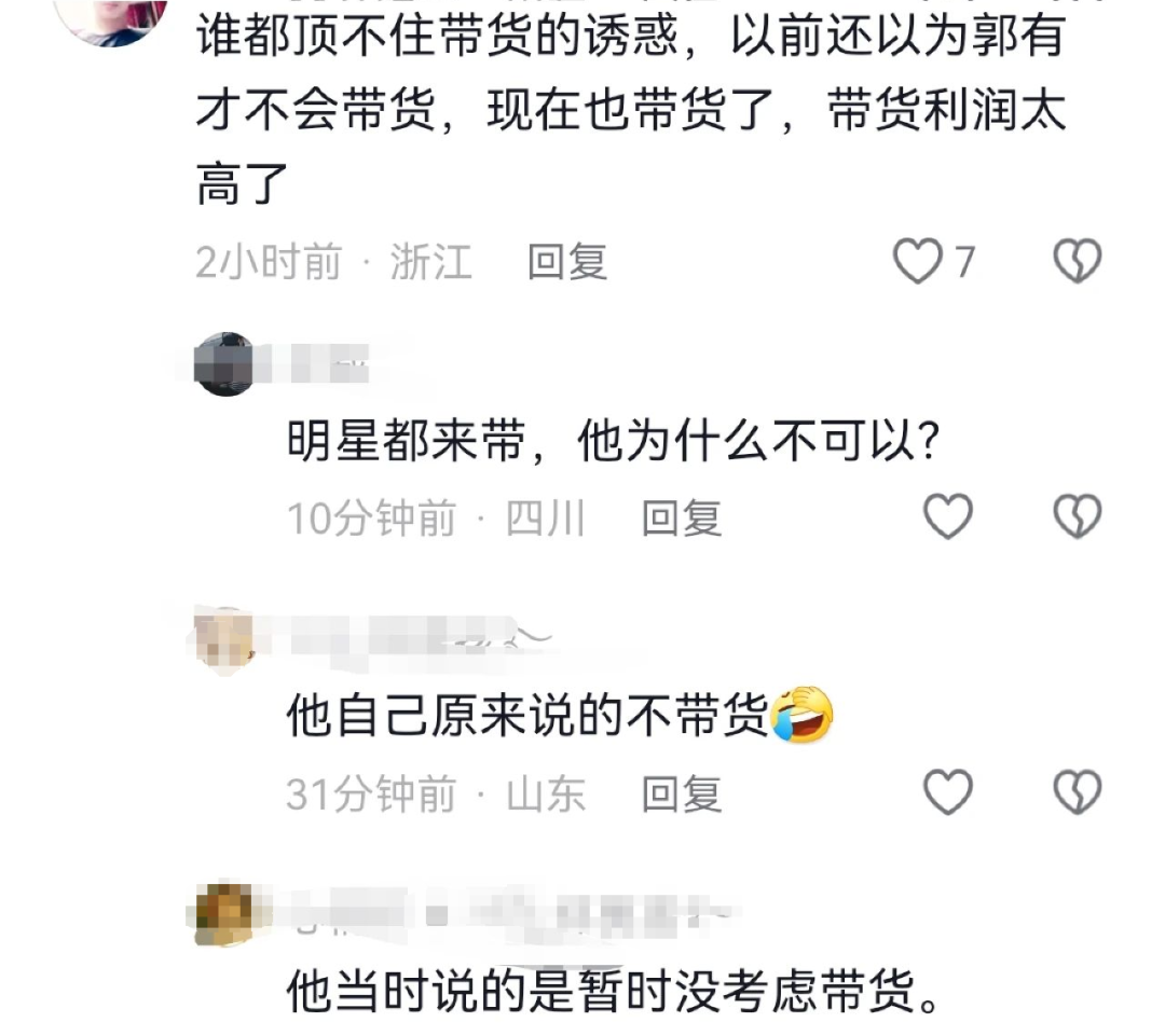 甚至有网友表示强烈反对,“郭有才带货,我就拉黑不看了。”还有人补充,他直播唱歌收礼物赚的钱也不少了。
