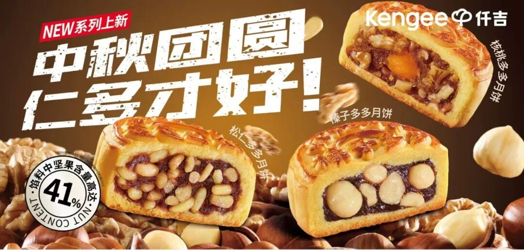 华中知名烘焙品牌仟吉,连续多年推出“减糖月饼”,今年在此基础上推出果仁多多系列月饼,馅料中坚果含量高达41%,还创新加入了橙皮、梅干等,中和馅料的口感与口味。