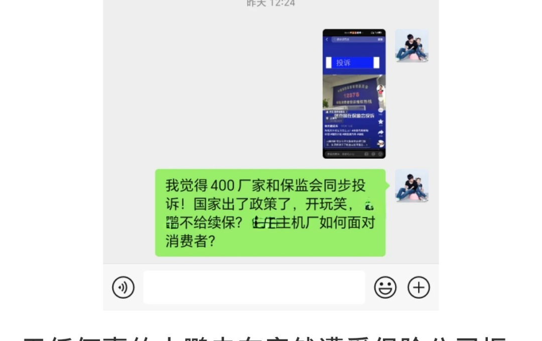“我要去厂家400和保监会官网一起告。国家出政策了开玩笑,不给续保?厂家如何面对消费者?”