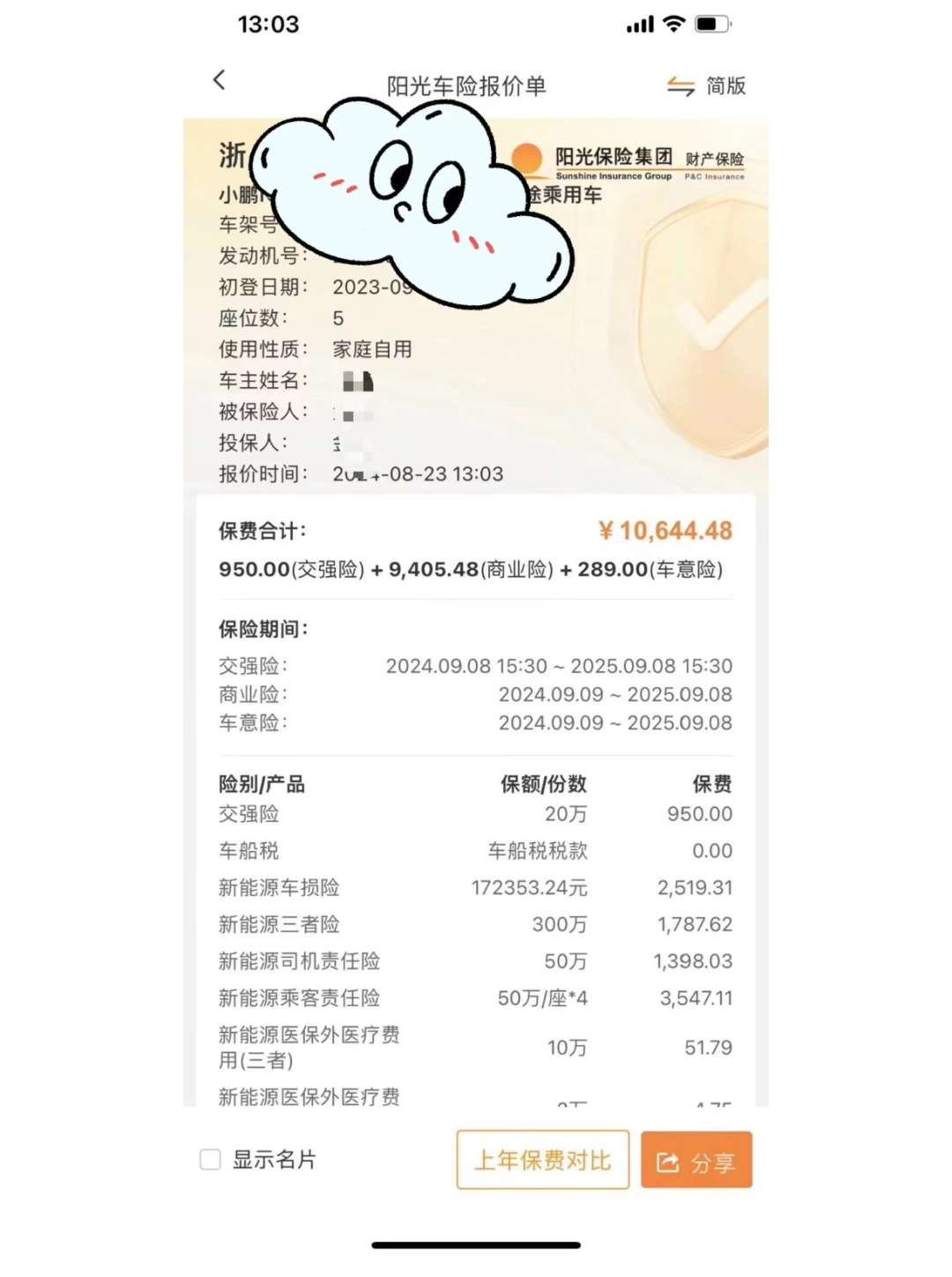 西翼威也有类似的遭遇。他说自己的P7开了三年,仅仅出过几次剐蹭事故,大保险公司直接拒保,无奈去找小保险公司,保费却直接翻倍,三年时间,保费从6000多块直接涨到10000+。“快赶上营运车保险了。” 西翼威表示,家里油车一年保险只有5000多元,出险少保费还会降。每年快到交保险的时候,各家保险公司还会主动打电话给优惠。而买了新能源车自己却没这福利了,“油车车主是爷,保险求着你办,新能源车主是孙子,你求着保险也不给你办。”