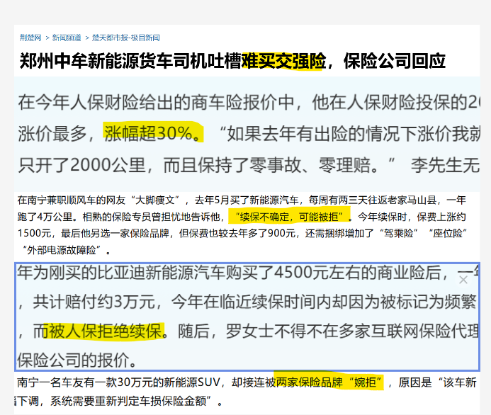 保费跳涨、续保被拒,新能源车主为何养不起“电动爹”?https://www.thepaper.cn/newsDetail_forward_26718391