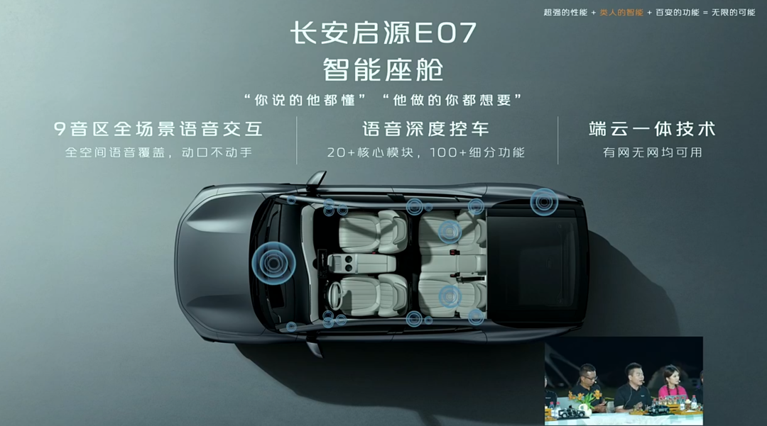 智能化向来被认为是传统车企的劣势,但基于雄厚的财力和技术底蕴,近几年传统车企在智能化方面表现也越来越出色。智能化一般分为智能车控、智能座舱、智能驾驶三大方面,从上文提到的智能魔毯悬架,便属于智能车控功能。智能座舱方面,启源E07基于SDA架构,以软件定义汽车为基础,车机系统界面简洁直观,所需的功能和应用也能够以小卡片形式展现,方便用户快捷操作,还支持9音区语音交互和可见即可说, 能够精准识别并执行语音指令。