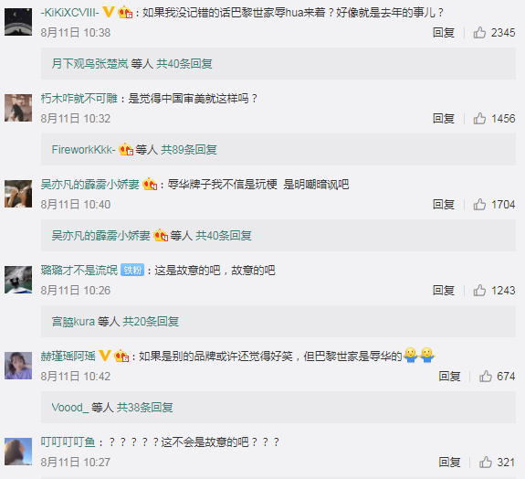 还有网友扯出了之前的辱华事件:“辱华牌子我不信是玩梗 是明嘲暗讽吧”、“如果是别的品牌或许还觉得好笑,但巴黎世家是辱华的”。