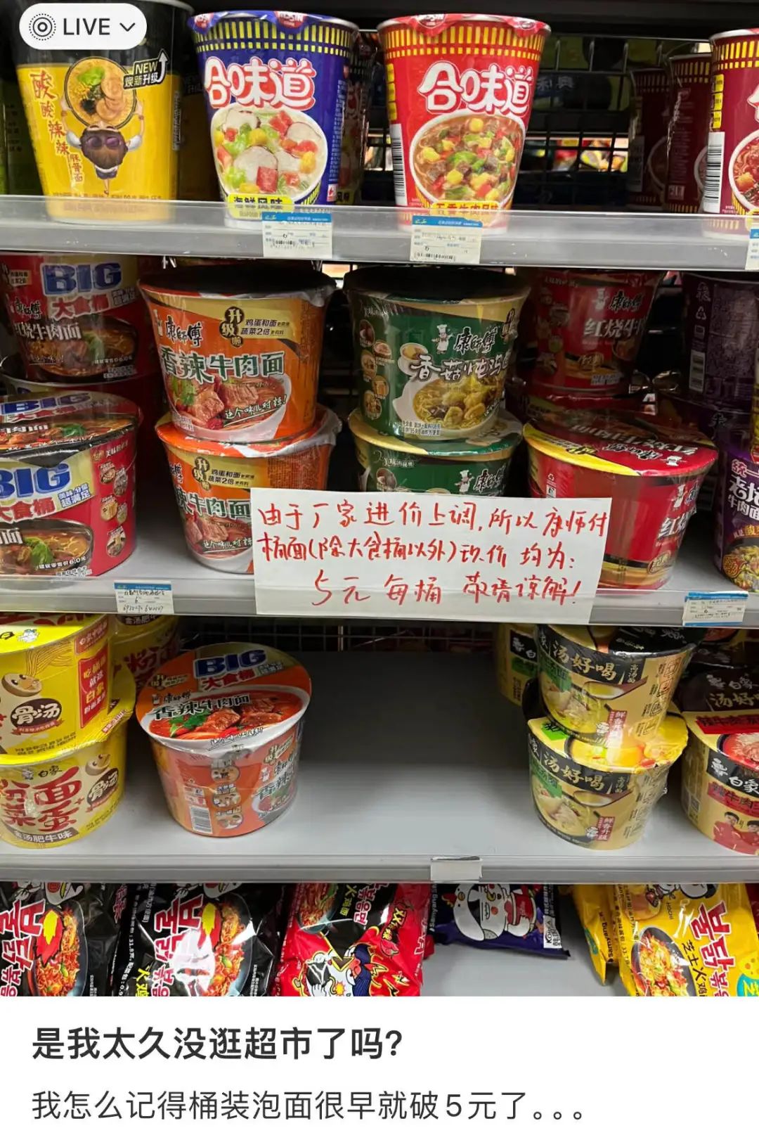 看着视频流出3米口水的打工人本想着今晚加完班后自己也煮碗面,结果一进便利店傻了眼:从啥时候起泡面这平民美食也吃不起了?