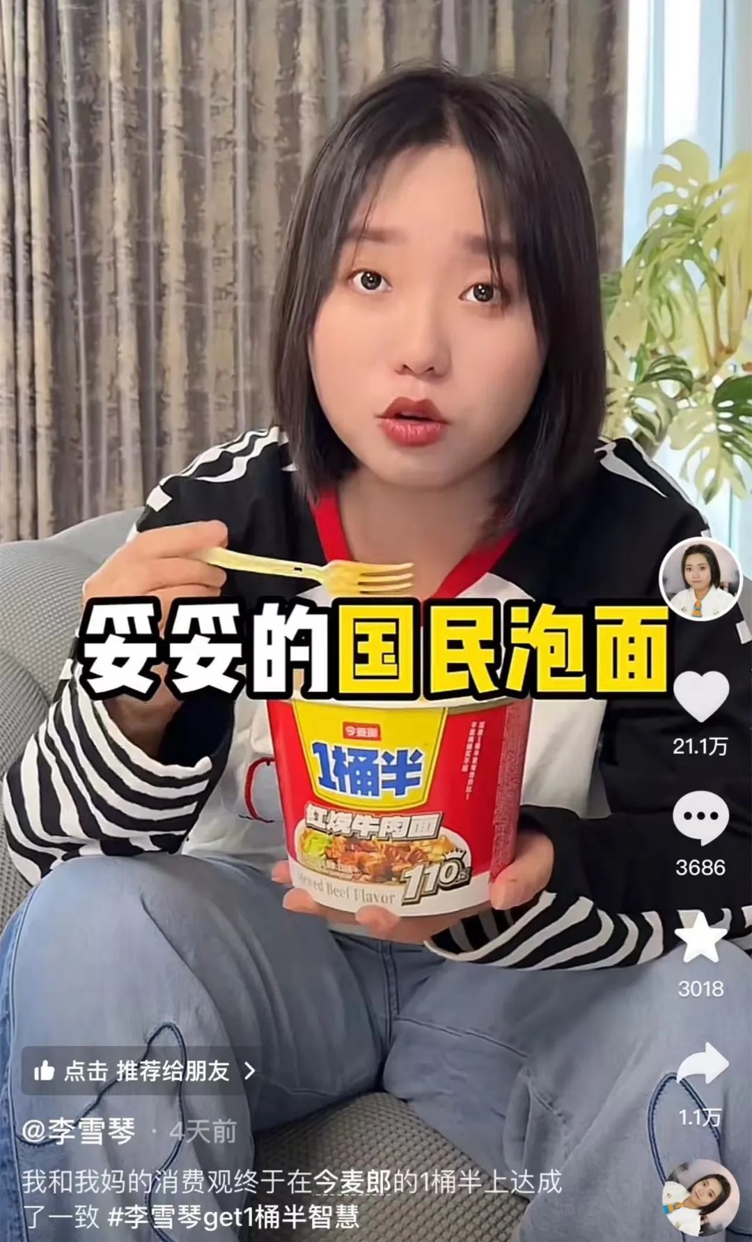 据今麦郎相关经销商渠道介绍,目前1桶半等“1”系列产品累计卖出120亿,相当于中国人每人吃了8份。最懂生活的小红书姐妹早就发现了“1桶半”的秘密,说这是【最懂打工人的泡面】,毕竟打工人有时候想吃泡面,真的只是求一个方便,求一个量大味美又便宜。