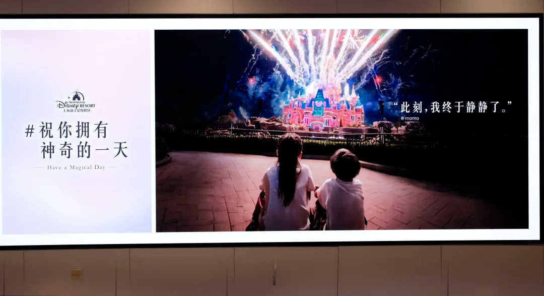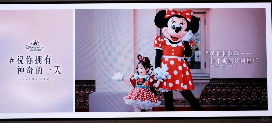 其实,这是迪士尼策划的“祝你拥有神奇的一天”主题活动,通过征集网友幸福瞬间的图片,再配上文案投放在上海热门地铁站,将这份幸福传递给更多受众,进一步强化品牌的影响力。