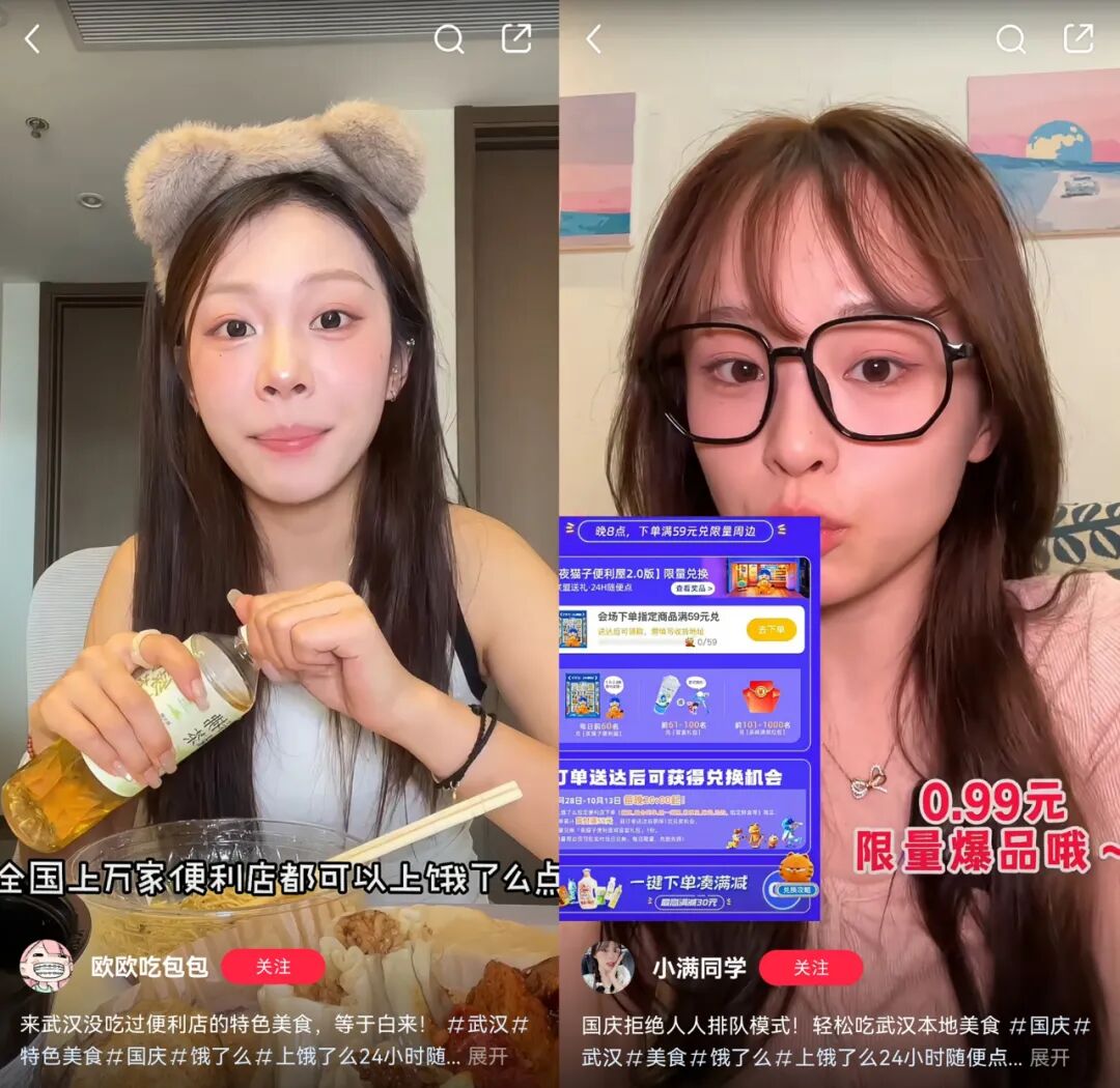 摆摊达人带领武汉大学生摆摊创业挑战,把武汉特色美食摆到热门景区:以便利店为供应商摆摊武汉特色美食,直播食材定价、摆摊策略、游戏互动、采购进货等内容,在这个过程中曝光下单页面,植入饿了么服务全面又方便的亮点。