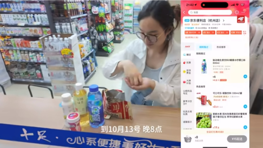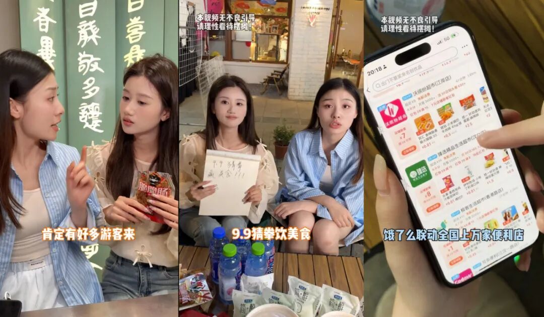 再翻看另一条杭州线的爆火,也离不开饿了么洞察外界对于杭州存在“美食荒漠”的刻板认知,联合B站博主上演“荒漠也是一种旷野”的街采营销,以正名杭州城市形象为名,深化“饿了么24小时便利店随便点”标签。