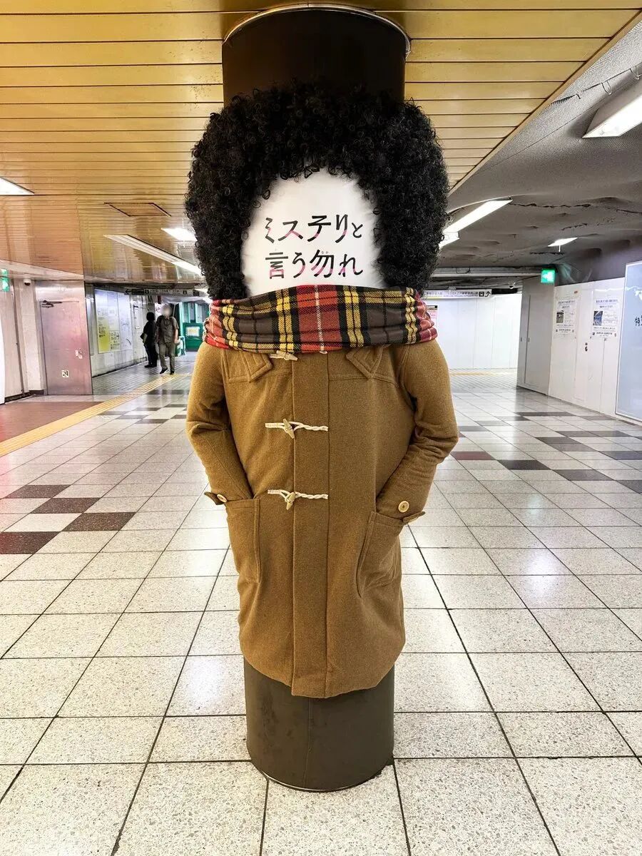 之前,日剧《勿言推理》开播时为了加大宣传,品牌方竟然让地铁站柱子cosplay主角形象,原本五官的位置,只有密密麻麻的几个大字。