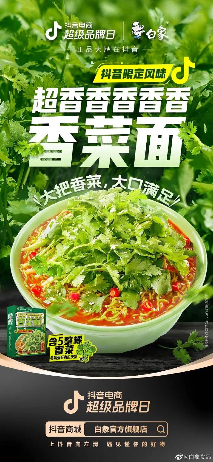 所以,当白象香菜面这样一个“倒反天罡”的食品出现,年轻人炸了,纷纷跃跃欲试,而社交平台的推流也助力了其进一步出圈,形成爆火的网红效应。