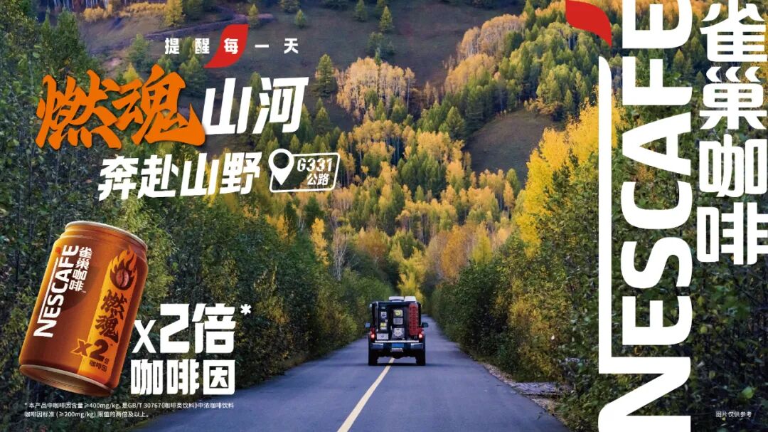 自驾旅途中,咖啡往往是多数人的首选饮品。其提振、醒神的功能属性,满足了长途驾驶路上司机和乘客们“续航”的功能需求。不同于普通短途出行,自驾风景虽美,但长时间驾驶一路上疲惫感会加重,而雀巢咖啡旗下 2 倍燃魂浓咖啡饮料恰好能满足长时间驾驶途中超常提振的需求。