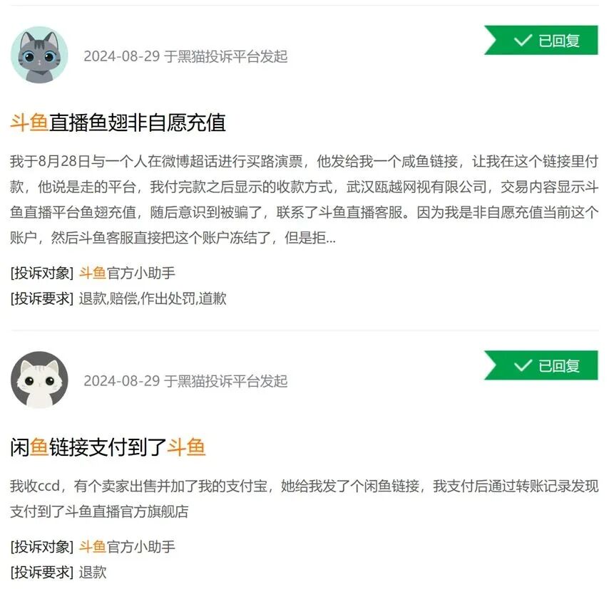 前不久的8月,多名斗鱼用户曝光遭遇了“网络诈骗”,非自愿在斗鱼进行了充值。其中,消费者提到的扣款公司武汉瓯越网视有限公司的实控人正是陈少杰。