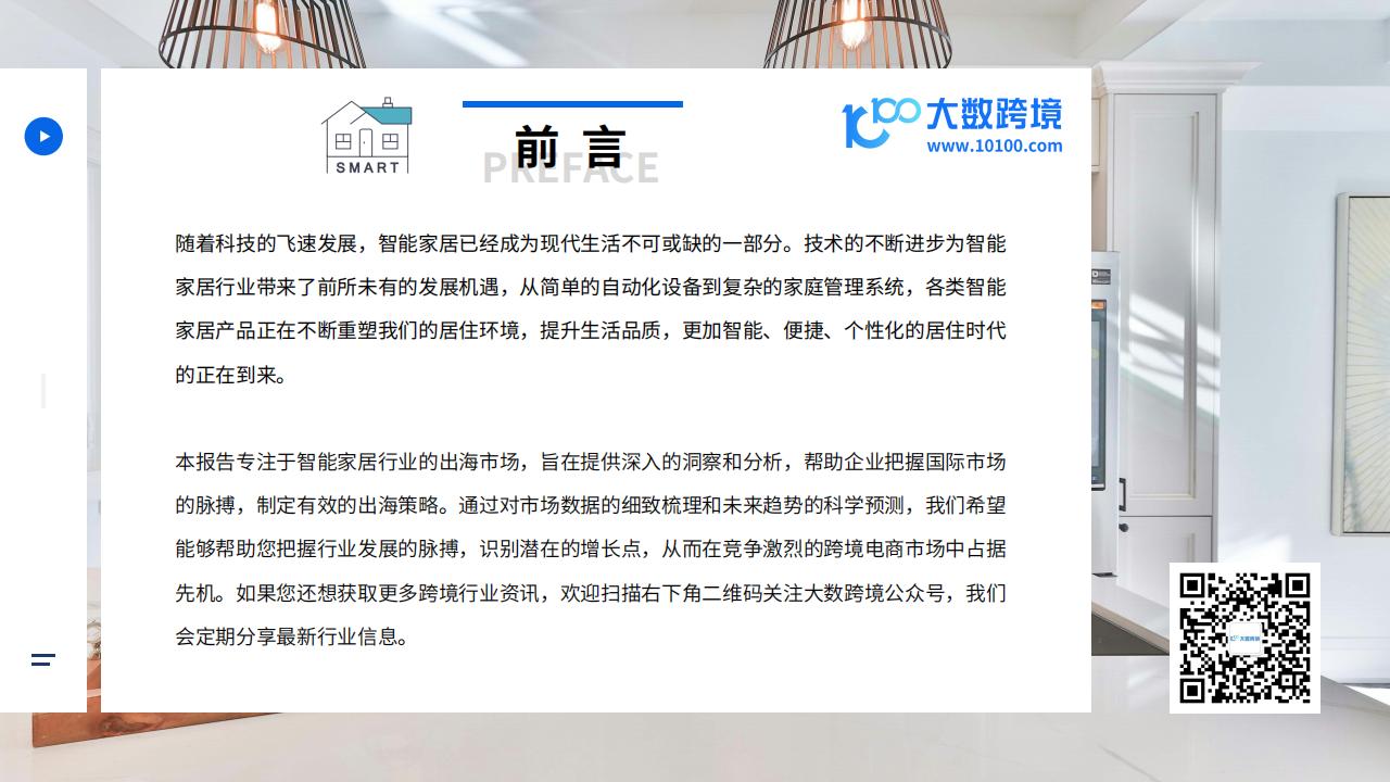 本报告专注于智能家居行业的出海市场,旨在提供深入的洞察和分析,帮助企业把握国际市场的脉搏,制定有效的出海策略。
