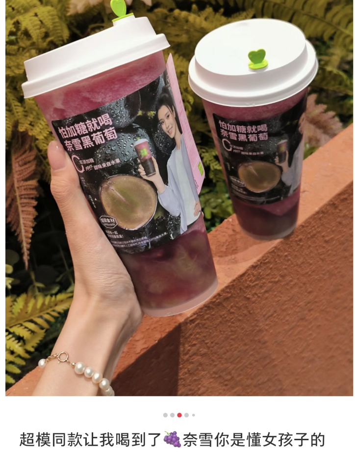 大家一看连对身材管理苛刻的超模,都喝奈雪,会对“不加糖”、健康配方更加信任。