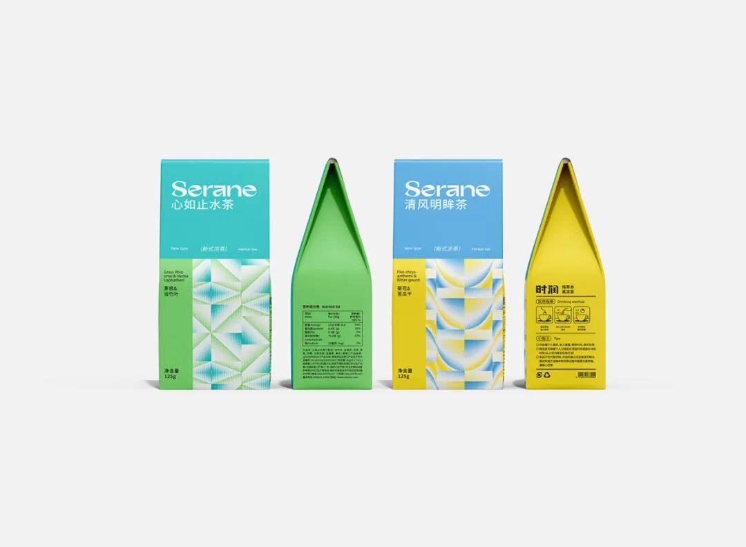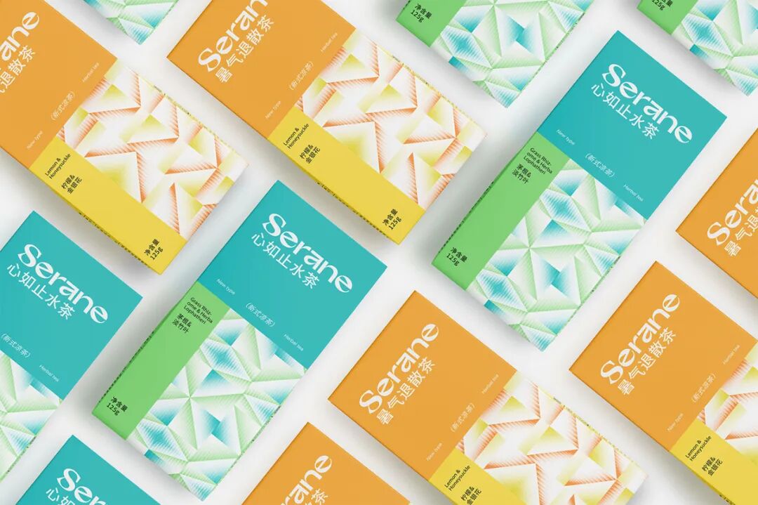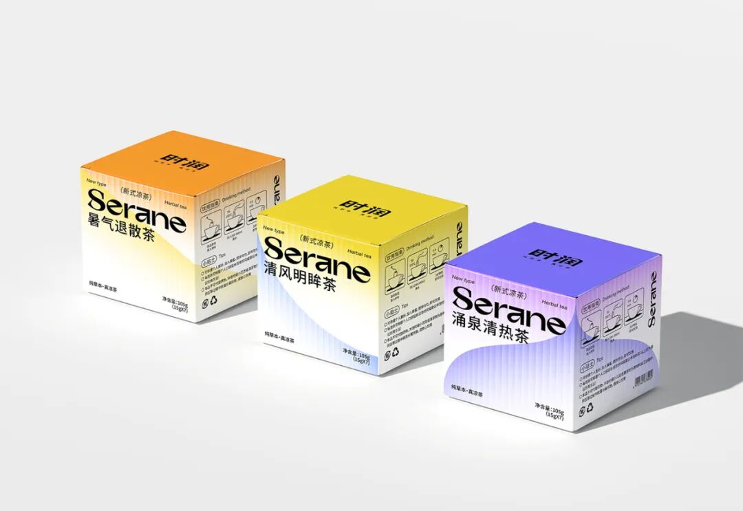 包装方面,设计从凉茶的功效取得灵感,将饮用凉茶后会起到的清热解毒、降火祛湿的作用通过视觉语言进行可视化呈现--其中主视觉中的几何图形元素采用柔和的过渡,结合弥散效果展示凉茶功效的疗愈过程,不同的图形还可以根据当前的需求进行变化和调整。此外,明快清新的色彩进一步表达产品给予用户的神清气爽、畅快淋漓的感受,体验感十足。