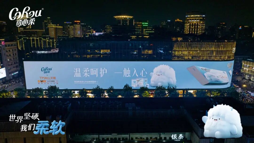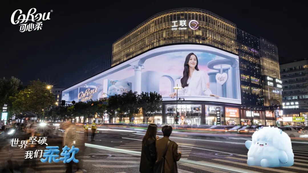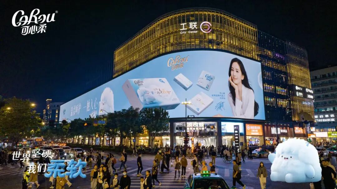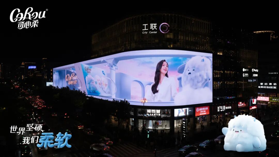 可心柔的创意营销从线上延伸到线下,让温柔触手可及,创意广告点亮城市角落。从杭州裸眼3D大屏到地铁广告,可心柔的创意营销引人注目。