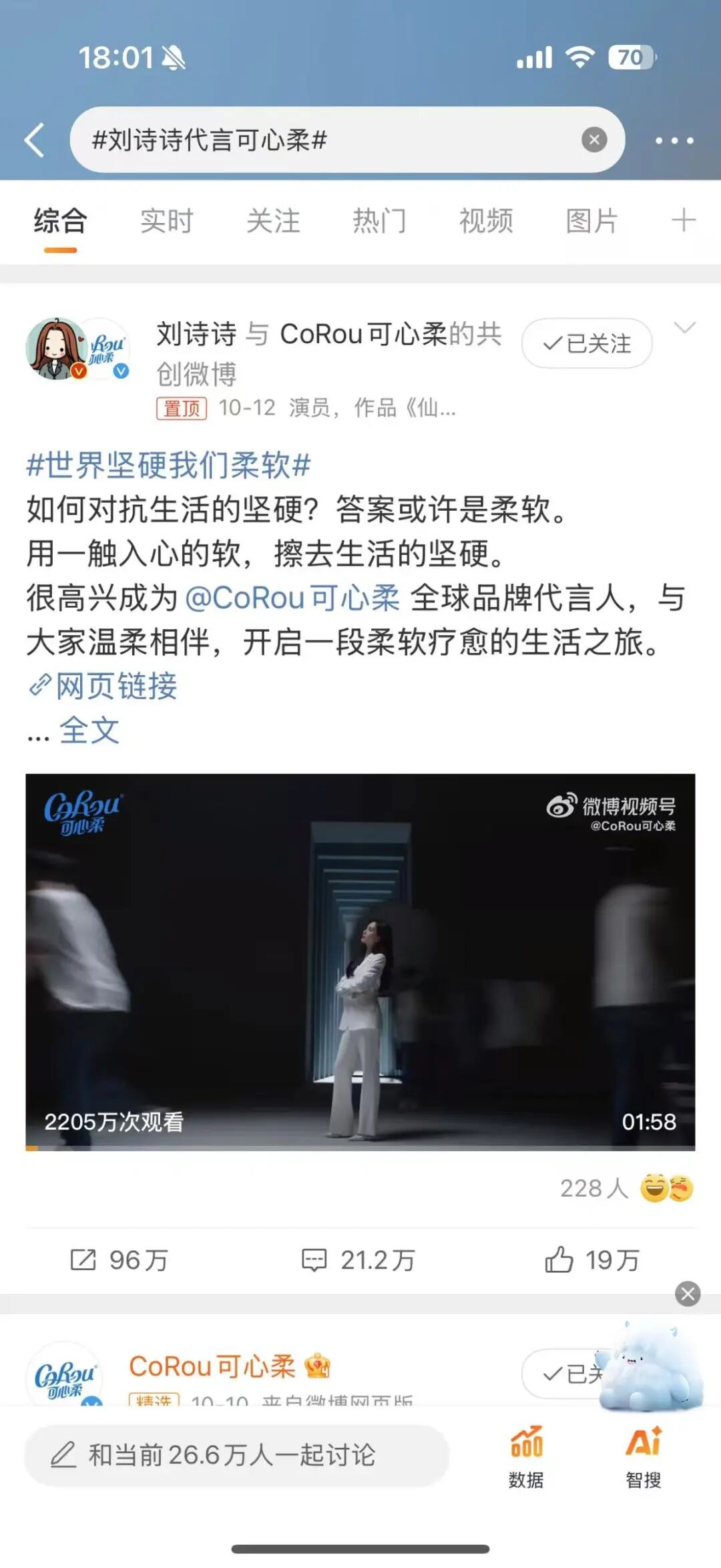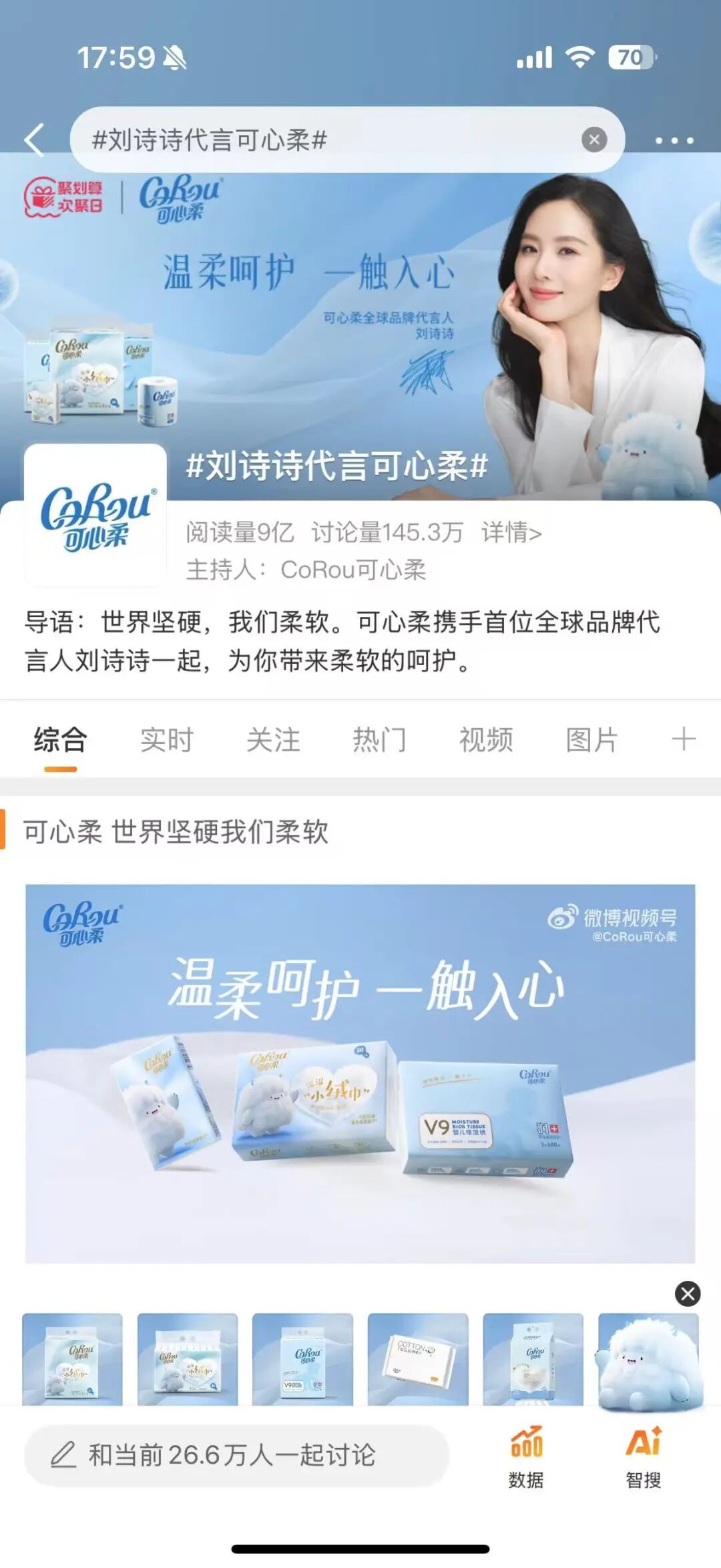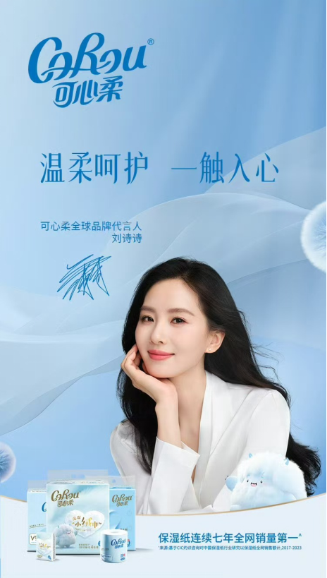 这种全方位考量的品牌策略不仅提升了品牌形象,还成功地与消费者建立了深层次的情感共鸣。将柔软与温柔深度捆绑,让产品的柔软深度具像化、人格化,会让人一提起可心柔便联想到刘诗诗的温柔形象。
