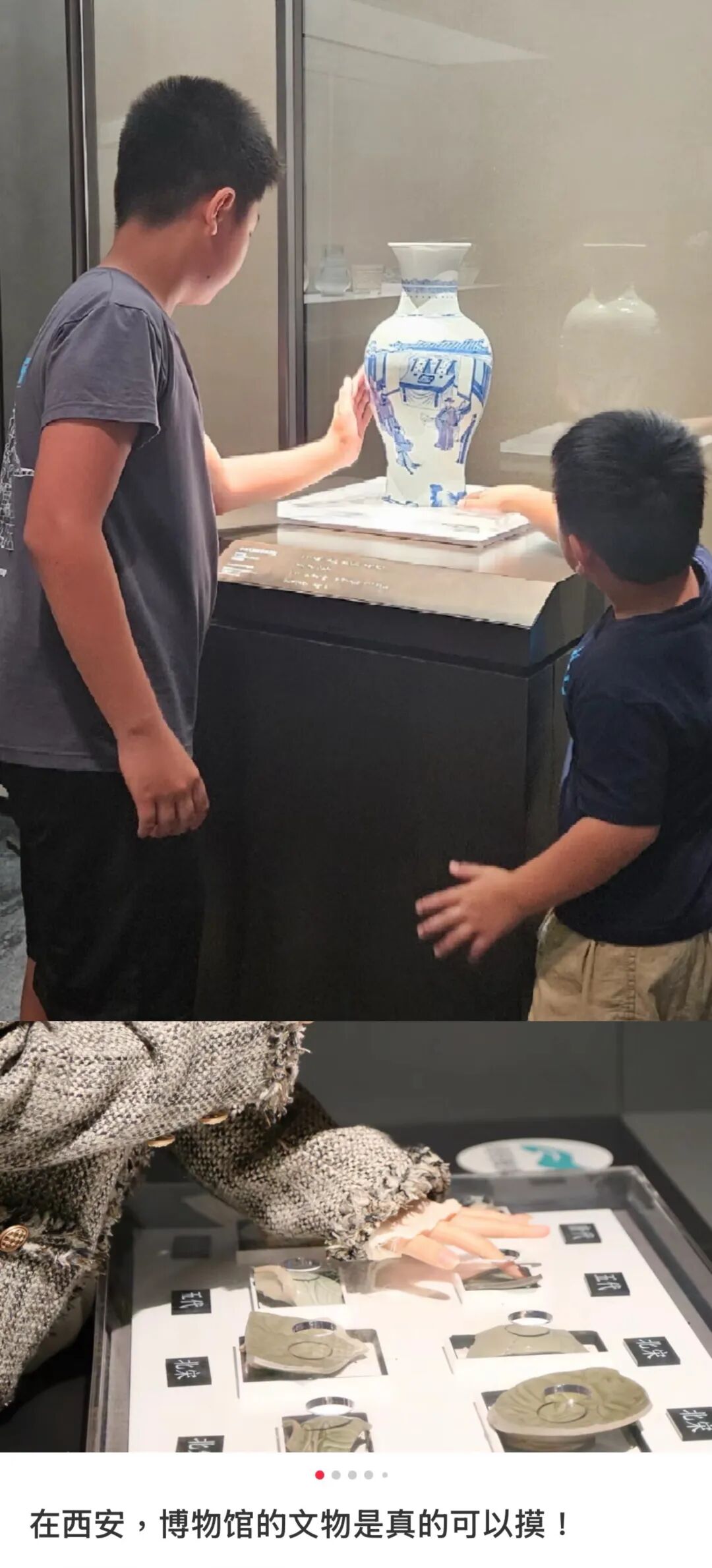 不止是陕西博物馆开放了一部分文物可供游客触摸感受,上海博物馆也将部分文物供游客触摸。