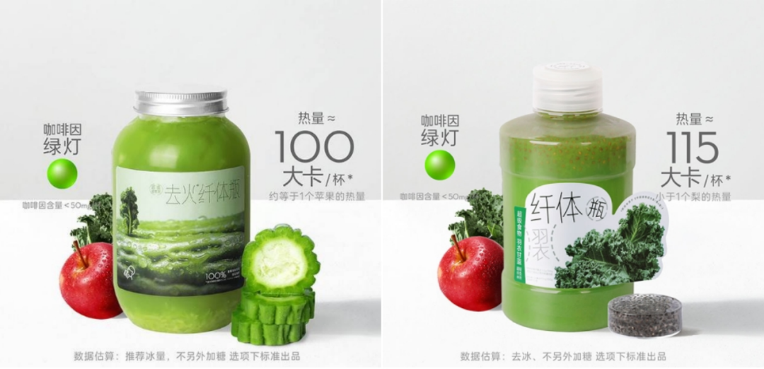 8月23日,夺冠纤体瓶全线补货,再掀热潮;9月19日,喜茶正式上新“超级植物茶”系列第二款单品“去火*纤体瓶”。