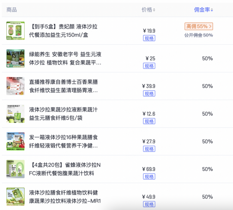 观潮新消费观察到,很多品牌合作的达人在直播间介绍或在笔记中种草液体沙拉时,常常建议将其作为代餐来饮用,被不少网友认为是智商税。