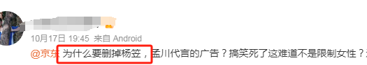就有女性网友表示不解,凭什么下架了杨笠的广告?这难道不是限制女性?