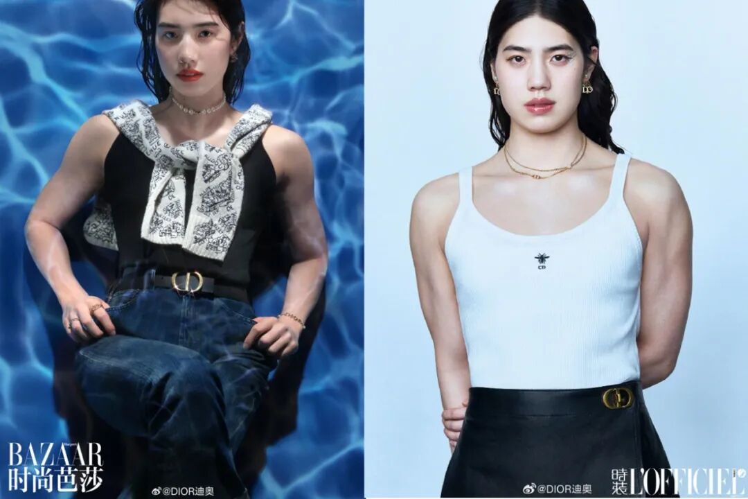还有迪奥为张雨霏拍的海报,肉眼可见的手臂肌肉线条,隔着屏幕都能感受到带感的力量。