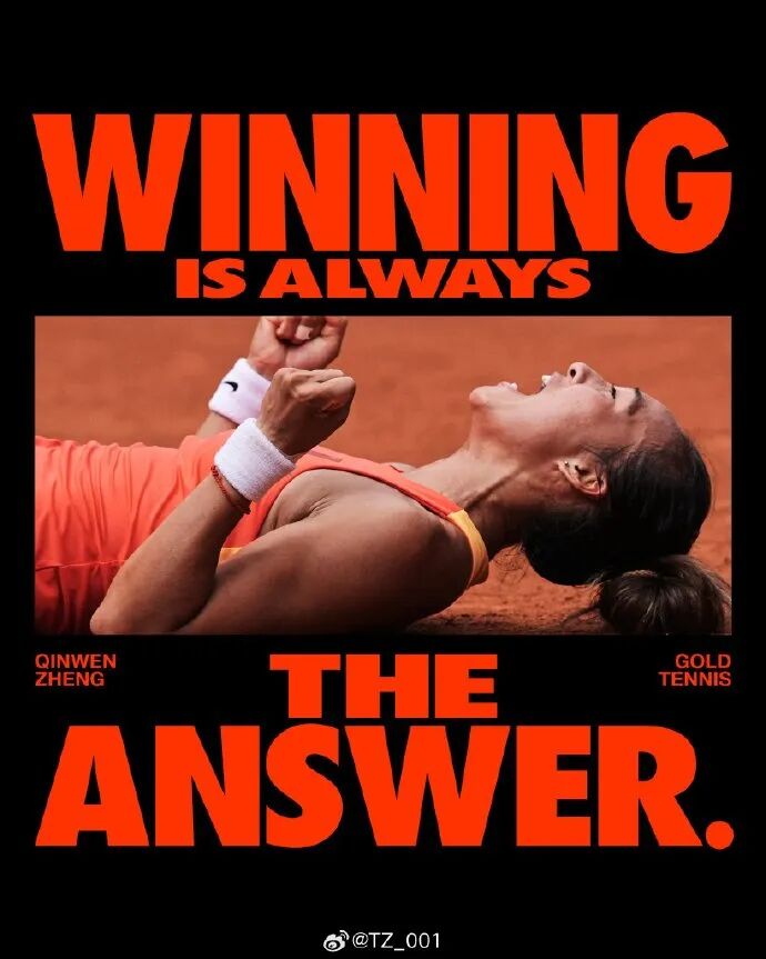 郑钦文将力量美彻底具象化,这在耐克的广告上也展现得淋漓尽致: