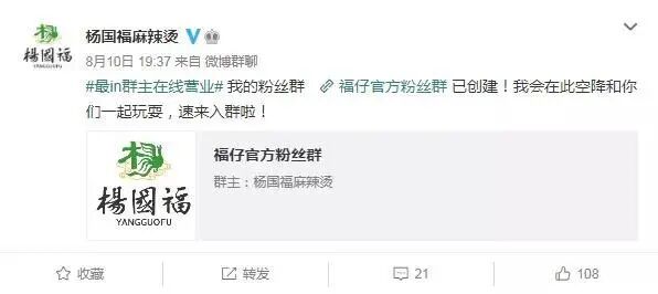 免费的营销自然不能放过。就在这场“乌龙梗”事件上升为“连续剧”后,莫名被cue的杨国福立即顺水推舟,微博三连,先是更文感谢张亮,并发起抽奖,随后顺势建起了粉丝群,让网友积极加入。