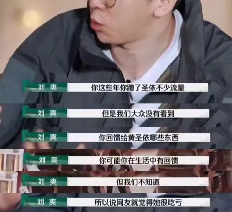 就像《再见爱人4》中另一个嘉宾刘爽(古早网红“留几手”)直接吐槽杨子说的那样,“你这些年蹭了圣依不少流量,但是我们大众没有看到你回馈给黄圣依哪些东西。”