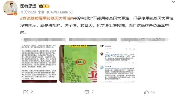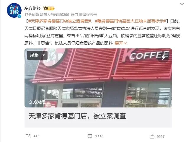 因为使用转基因大豆油,肯德基被立案了。