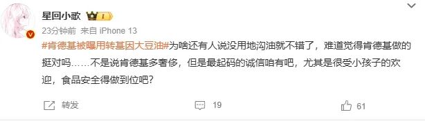 作为洋快餐的领军者,肯德基在转基因问题上“马失前蹄”,按常理本应遭到网友的猛烈抨击。